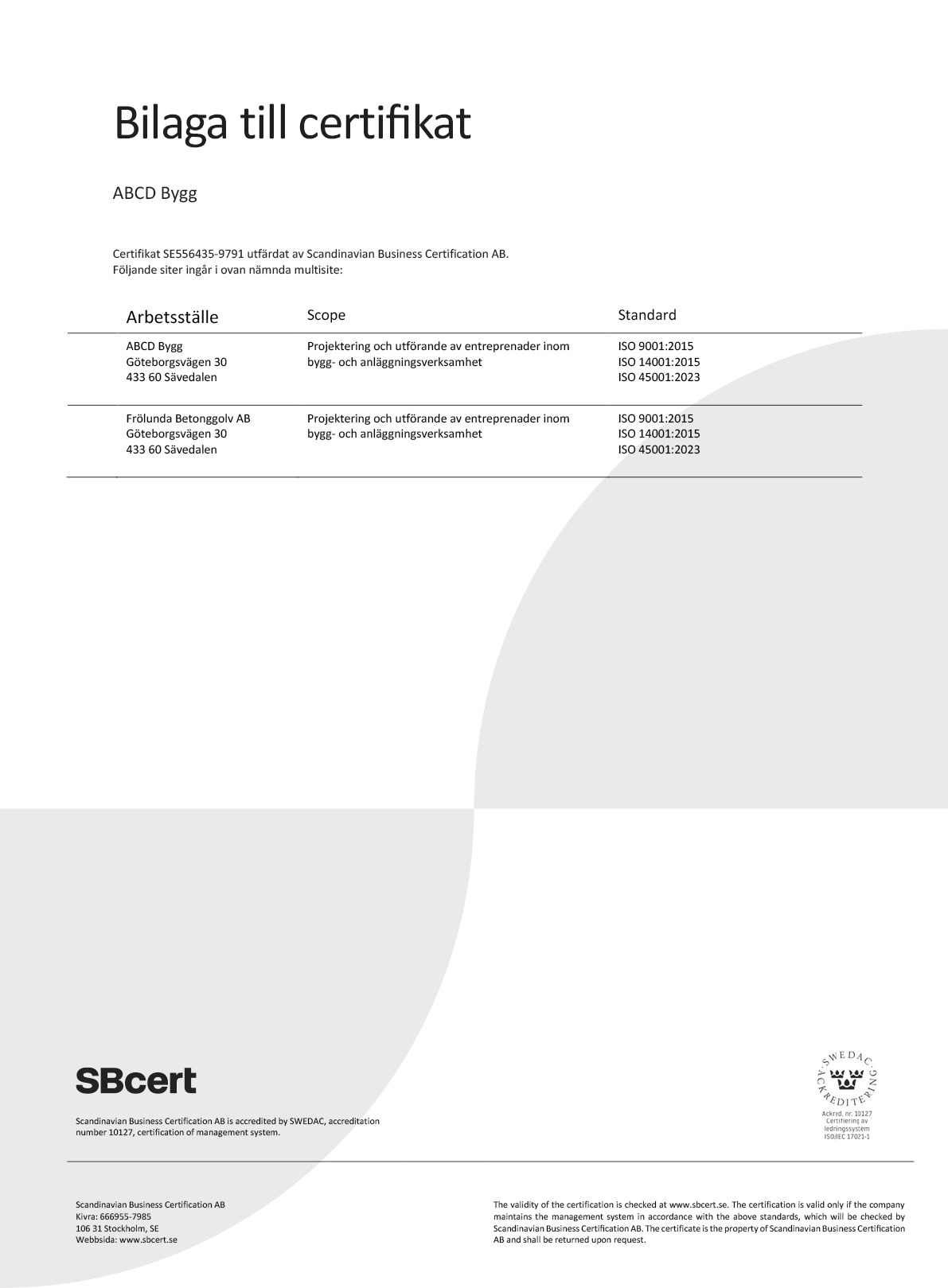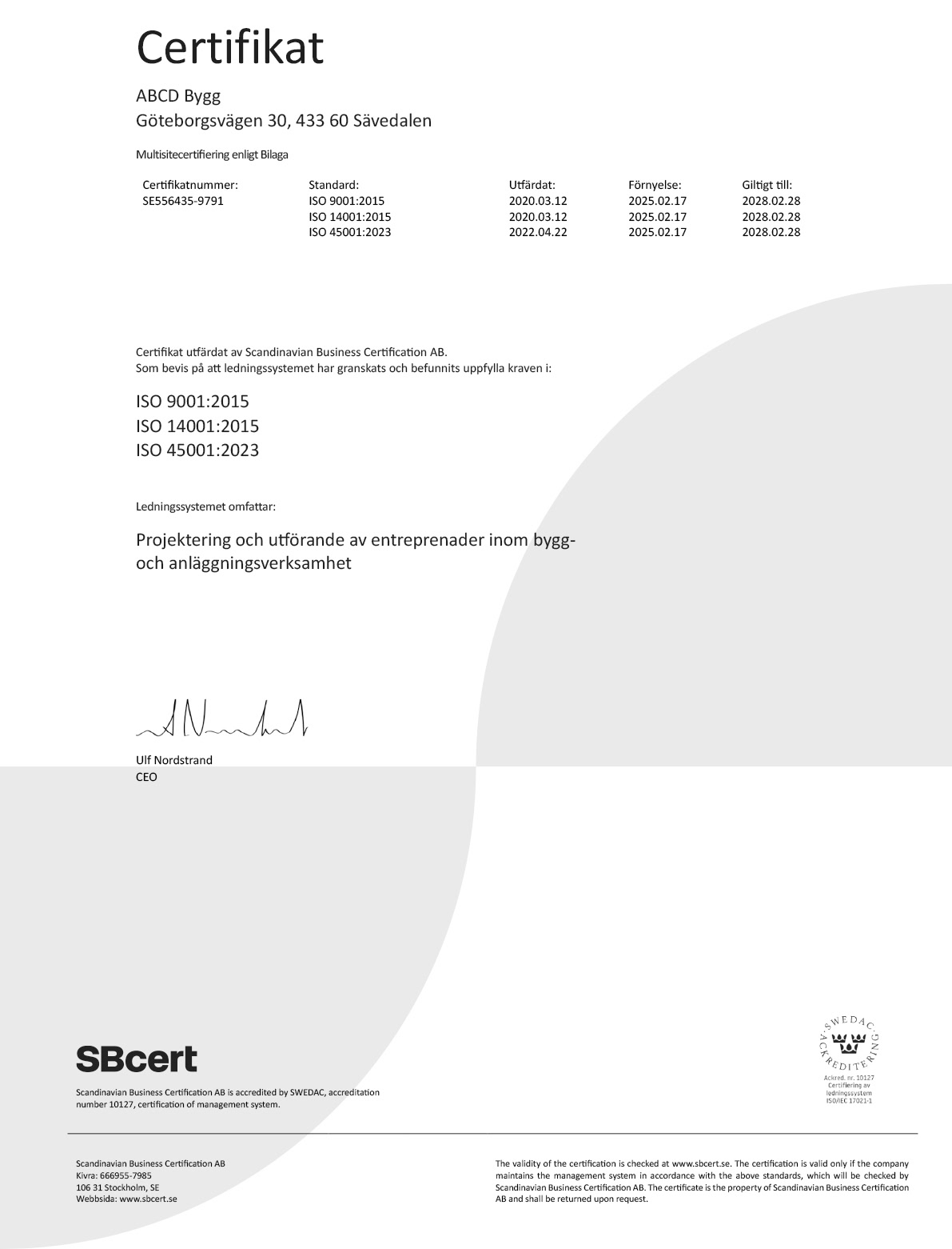 ABCD bygg är ISO certifierade och vårt Ledningssystem som omfattar,