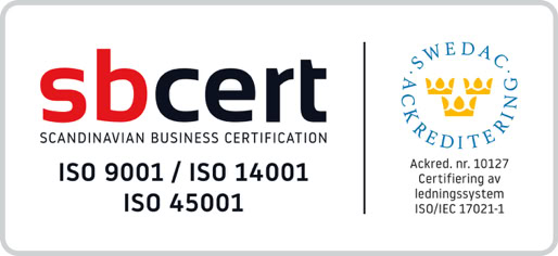 uppfyller kraven enligt ISO 9001: 2015, ISO 14001:2015 och ISO 45001
